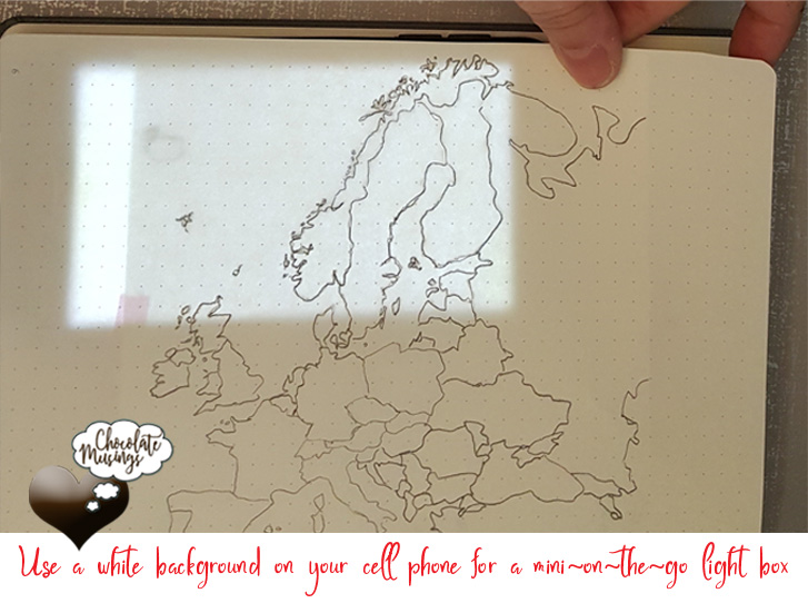 I grew up in the United States, have gone through United States Geography through my whole life. So the outline of the US is familiar to me. When I started outlining more unfamiliar countries of the world and Europe, I found it hard to get the details just right. I don’t {currently} own a light box otherwise I would have used that. I grabbed my phone and couldn’t find the app that made the screen display white. Darn it!